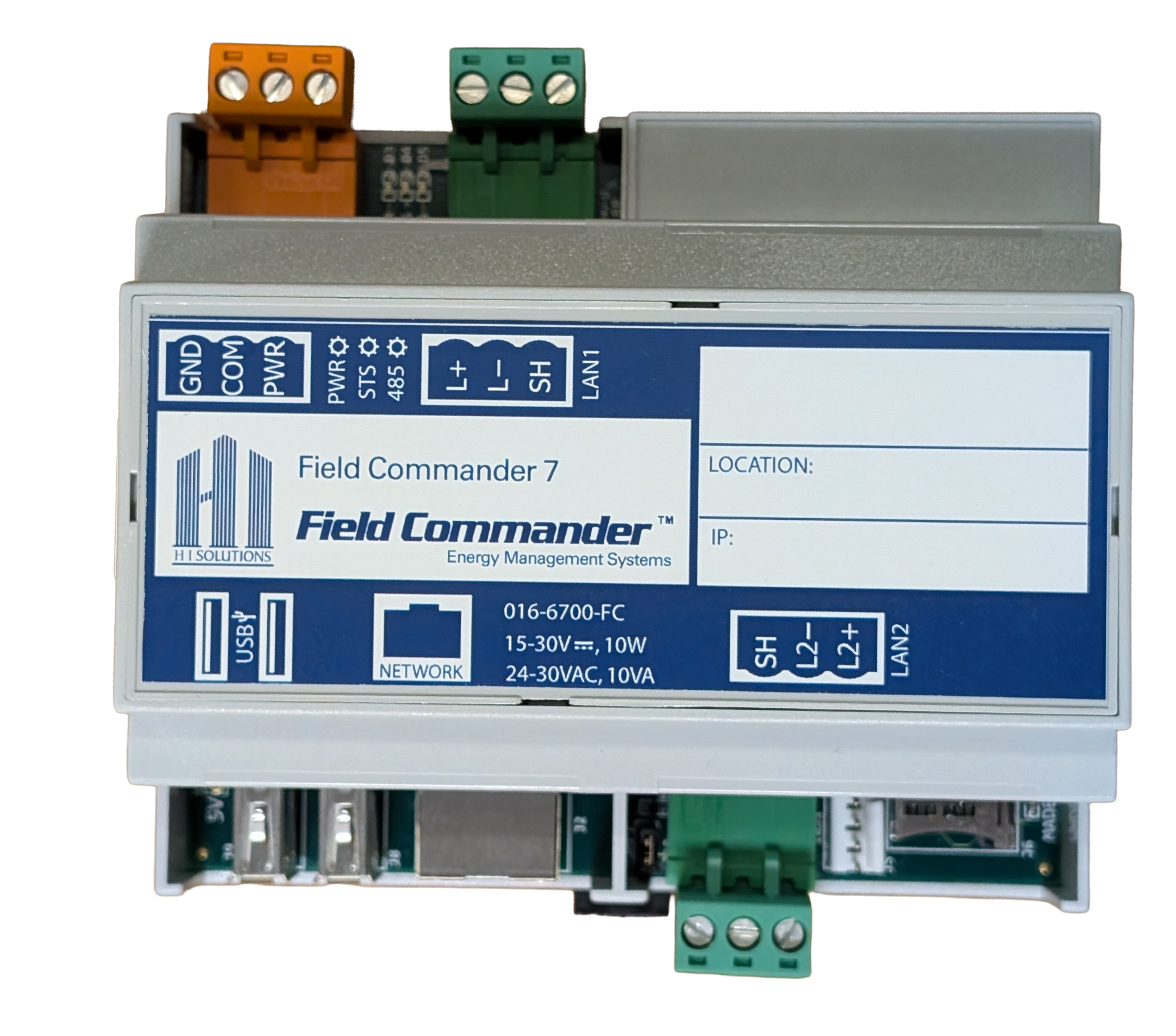 The Field Commander 7 is a powerful facility coordination controller featuring a multitasking processor, maintenance-free SuperCAP™ timekeeping, and optional onboard I/O to simplify installation. It manages up to 600 unitary controllers across 15 U-LAN networks, with Ethernet access for local or remote connection and a built-in HTML5 web interface for setup, graphics, and daily operations. Designed for comprehensive building management, it handles scheduling, monitoring, reporting, trend logging, and energy-based control strategies, while optional BACnetTCP Server capability enables smooth integration with existing BACnet systems.
